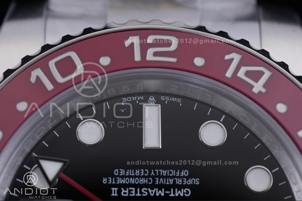 - Bezel : Bi-directional rotating blue/red ceramic bezel(The bezel radiates an all-red color under UV light, uncovering the red undertone beneath the blue as the genuine technology)