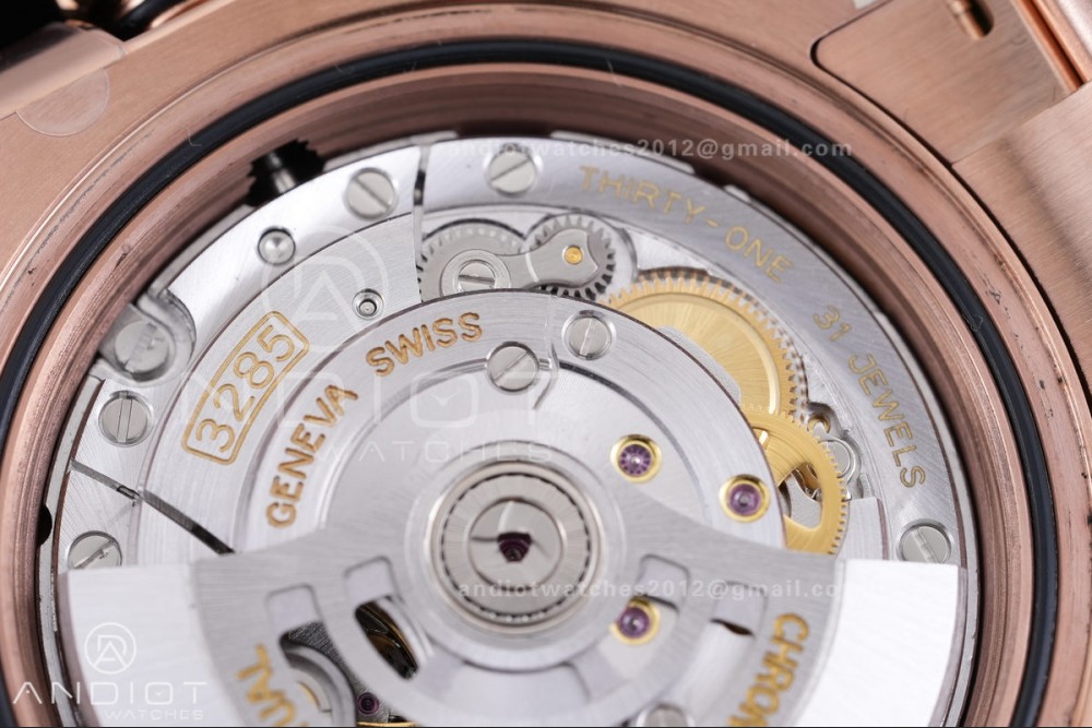 - Movement : Asian Super Clone Shanghai 3285 Automatic GMT movement with decorated bridges & rotor with correct hand stack (Hour Hand Adjustable) 72 hours power reserve