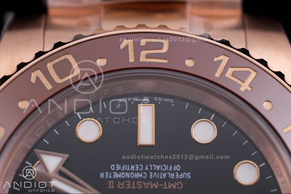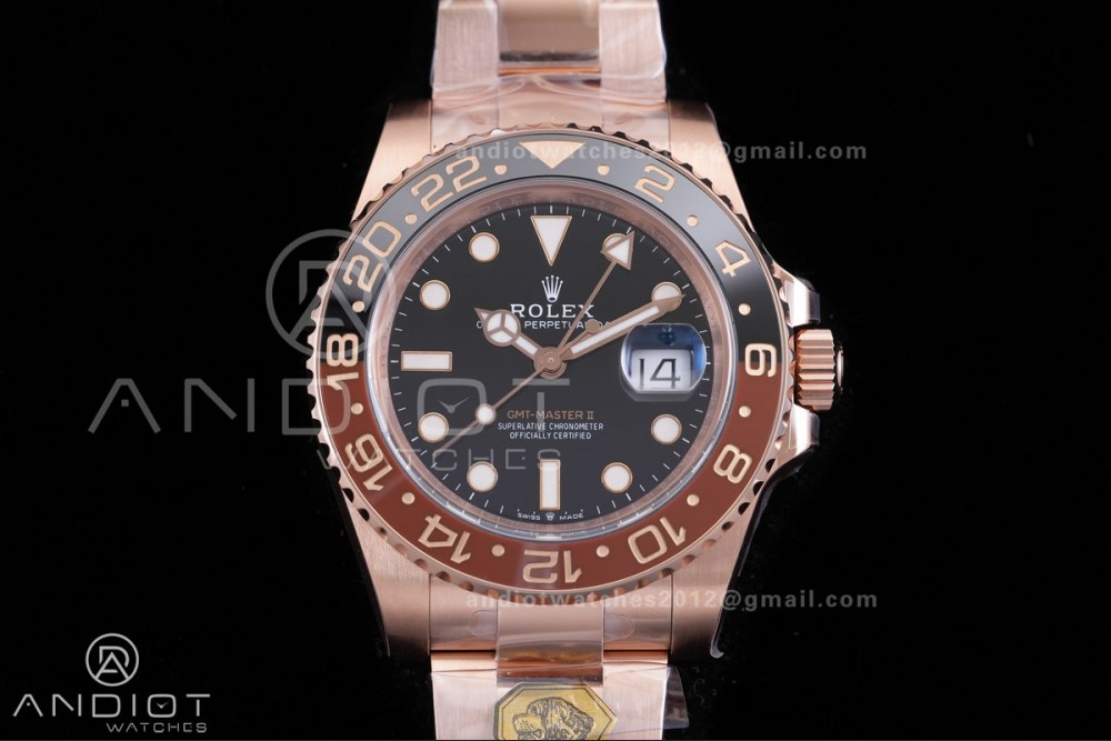 GMT Master II 126715 CHNR Gain Weight V4 Gold Factory 1:1 Best Edition Black Dial on RG Bracelet VR3285 CHS