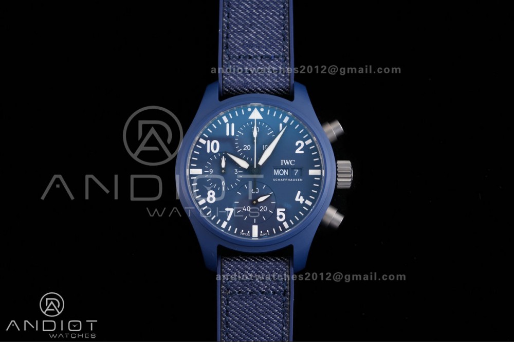 Pilot Chrono IW389404 Blue Ceramic APSF 1:1 Best Edition Blue Dial On Blue Nylon Strap Super Clone A69385