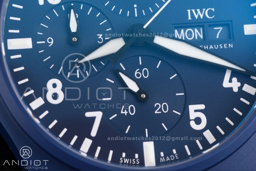 - Movement : Asian super clone IWC cal. 69385 movement, the best Asian IWC chronograph movement at the moment, 1:1 made from genuine movement.