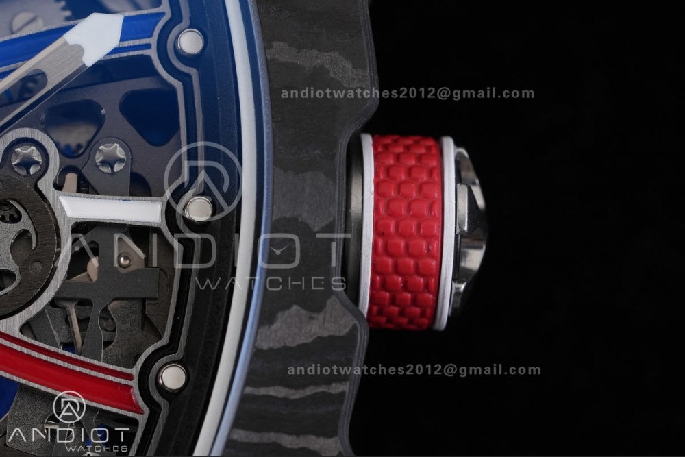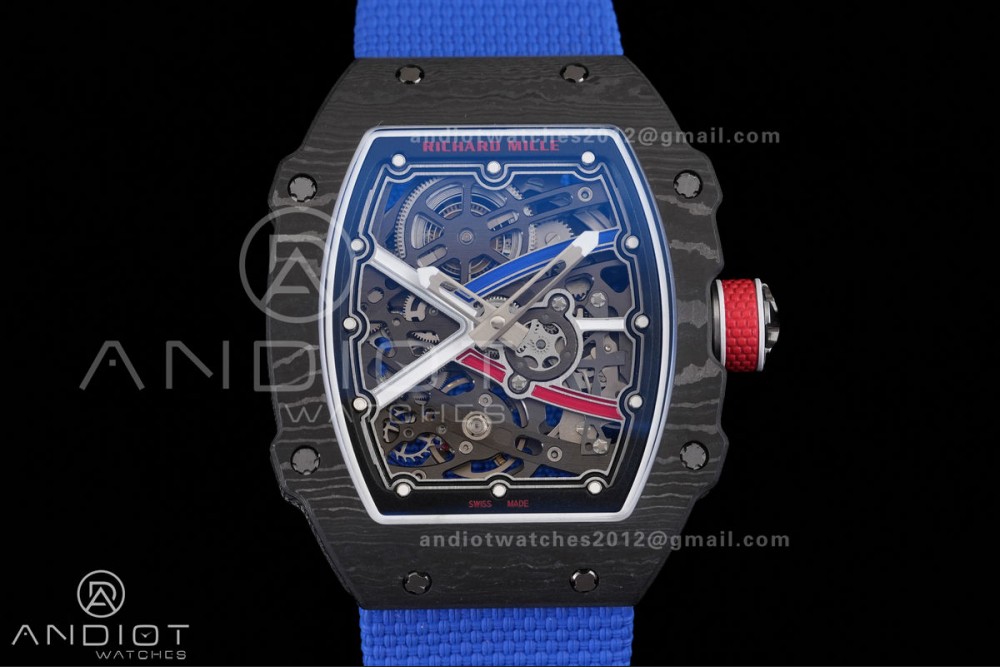 Umi Maker's RM67-02 Black NTPT France Blue/Red/White Skeleton Dial on Nylon strap CRMA7 Clone V2
