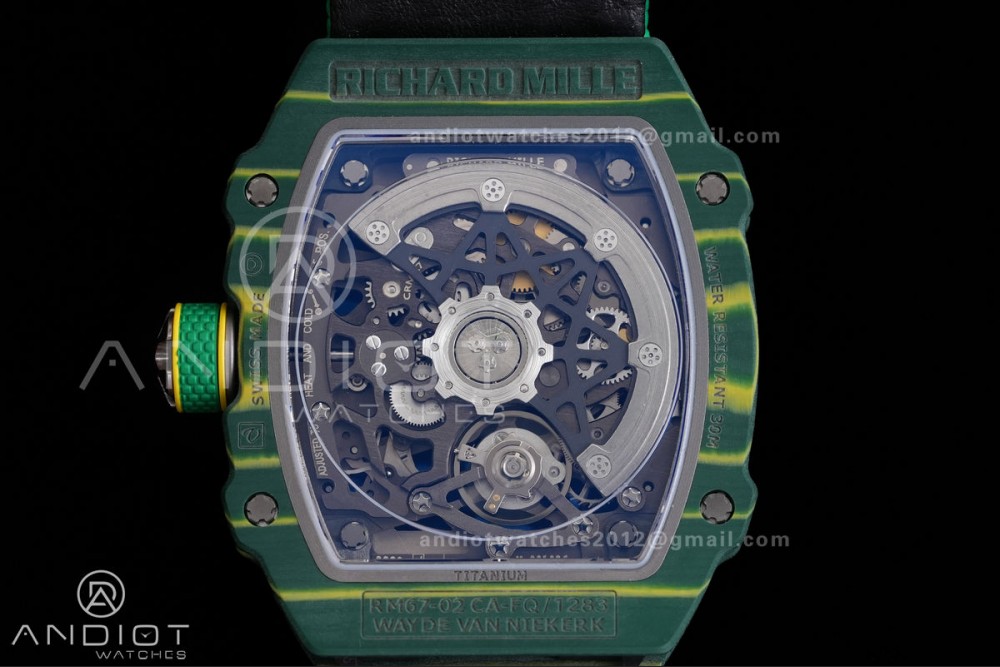 Umi Maker's RM67-02 Green NTPT Brazil Blue/Red/Green Skeleton Dial on Nylon strap CRMA7 Clone V2
