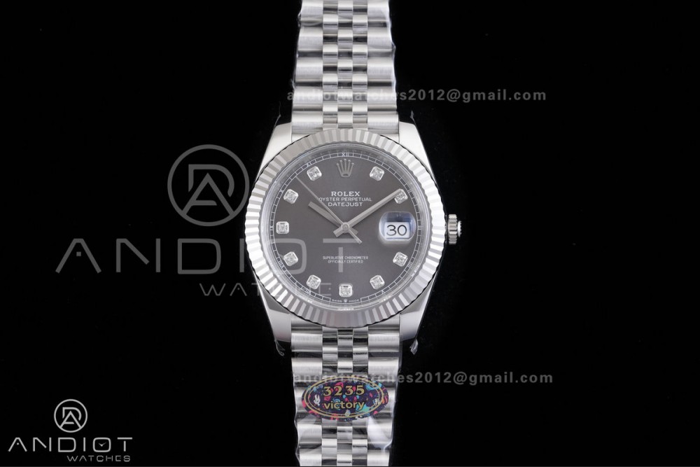 DateJust 41 126334 904L SS VF 1:1 Best Edition Gray Diamonds Dial on Jubilee Bracelet DD3235