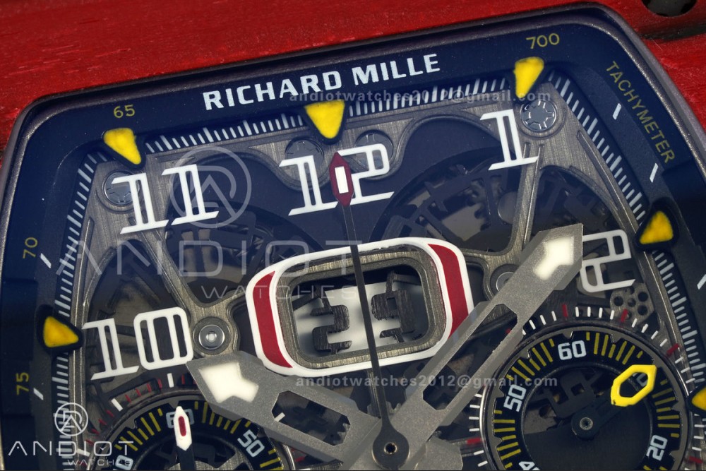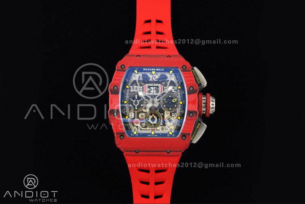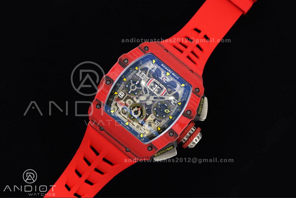 RM011 Red Carbon ABMF Best Edition Skeleton Dial on Red Rubber Strap A7750