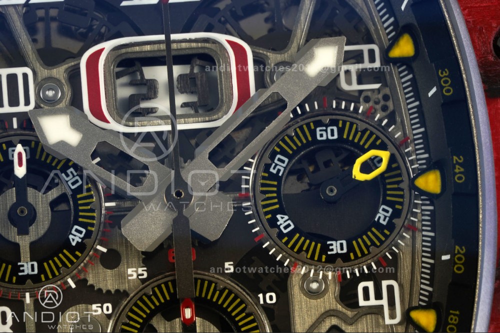 - Movement : Asian 7750 automatic chronograph movement with big date display decorated to RM movement, 28,800 VPH
