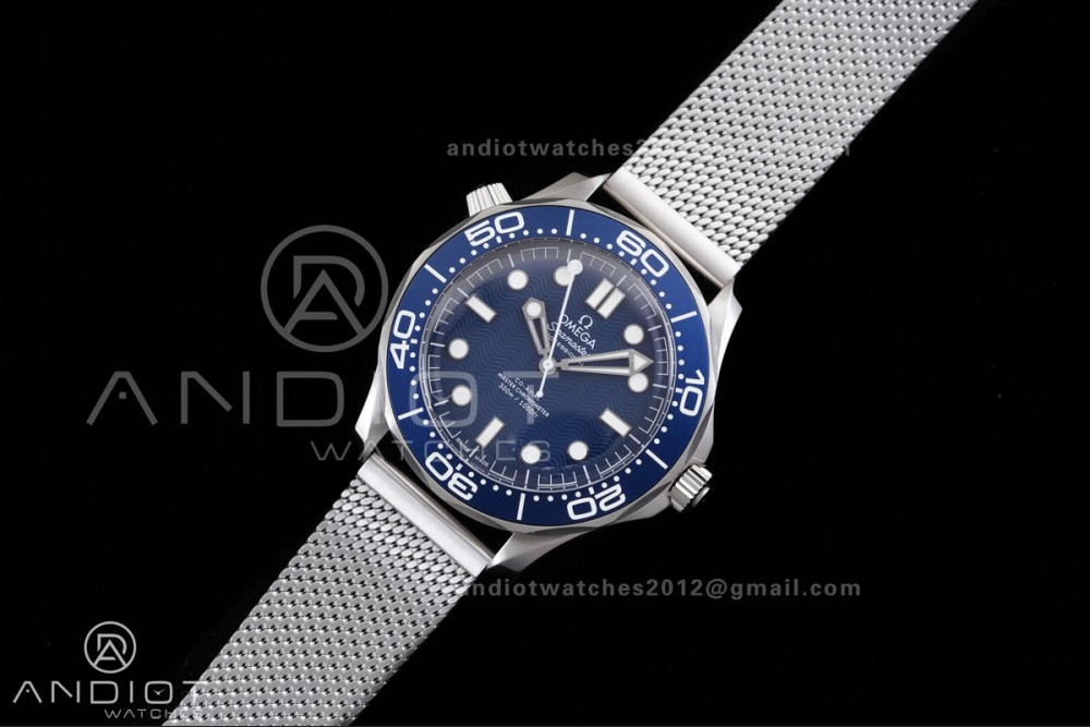 Seamaster 300M Diver 007 SS VSF 1:1 Best Edition Blue Wave Dial on SS Mesh Bracelet VS8806 Super Clone
