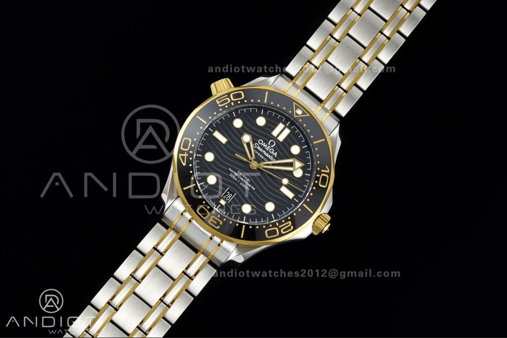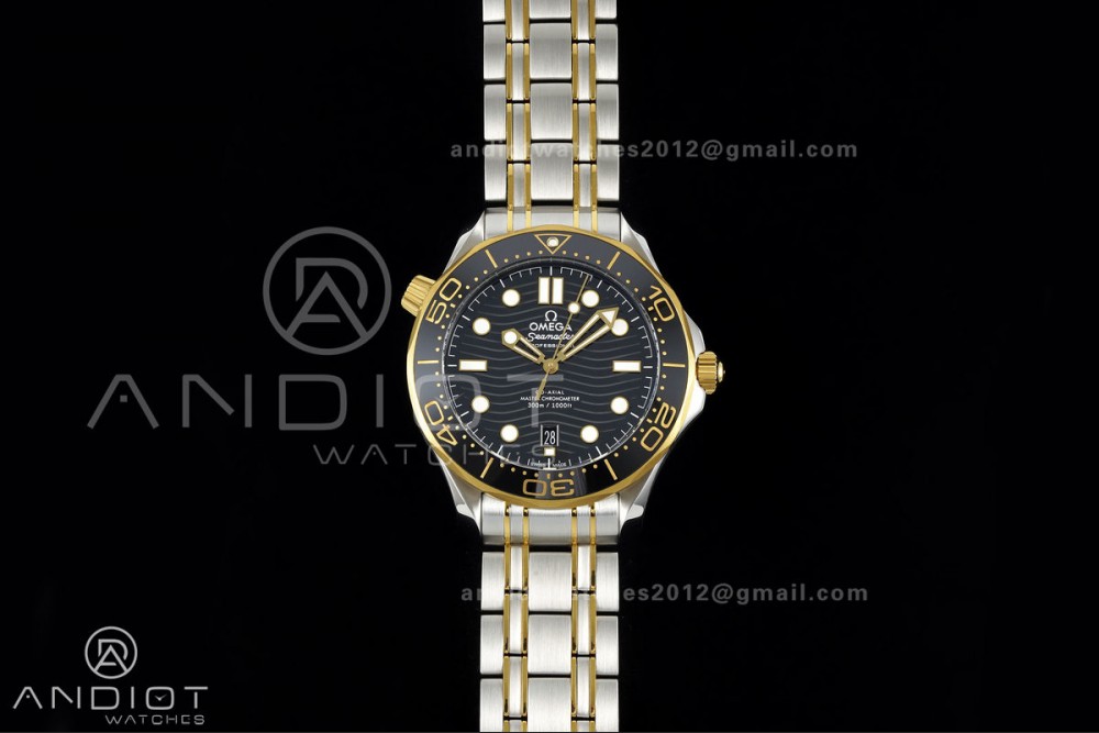 Seamaster Diver 300M SS/YG ORF 1:1 Best Edition Black Ceramic Black Dial on SS/YG Bracelet OR8800 Super Clone