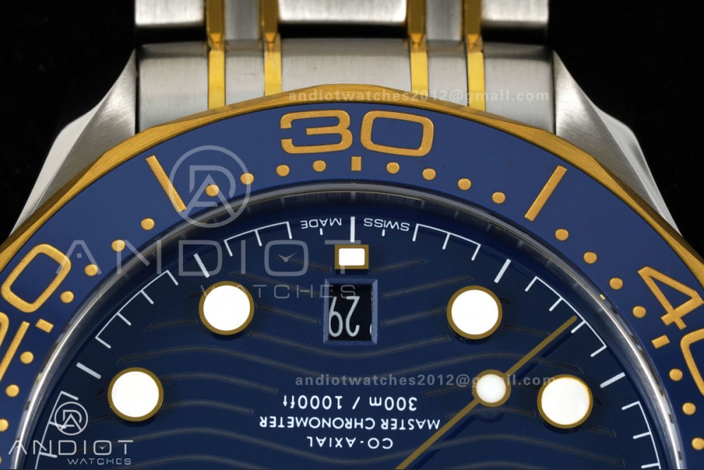 Seamaster Diver 300M SS/YG ORF 1:1 Best Edition Blue Ceramic Blue Dial on SS/YG Bracelet OR8800 Super Clone