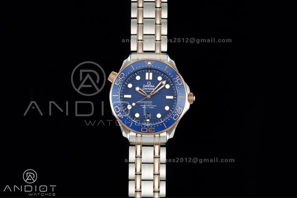 Seamaster Diver 300M SS/RG ORF 1:1 Best Edition Blue Ceramic Blue Dial on SS/RG Bracelet OR8800 Super Clone
