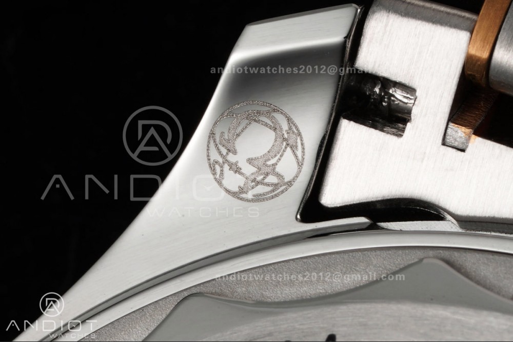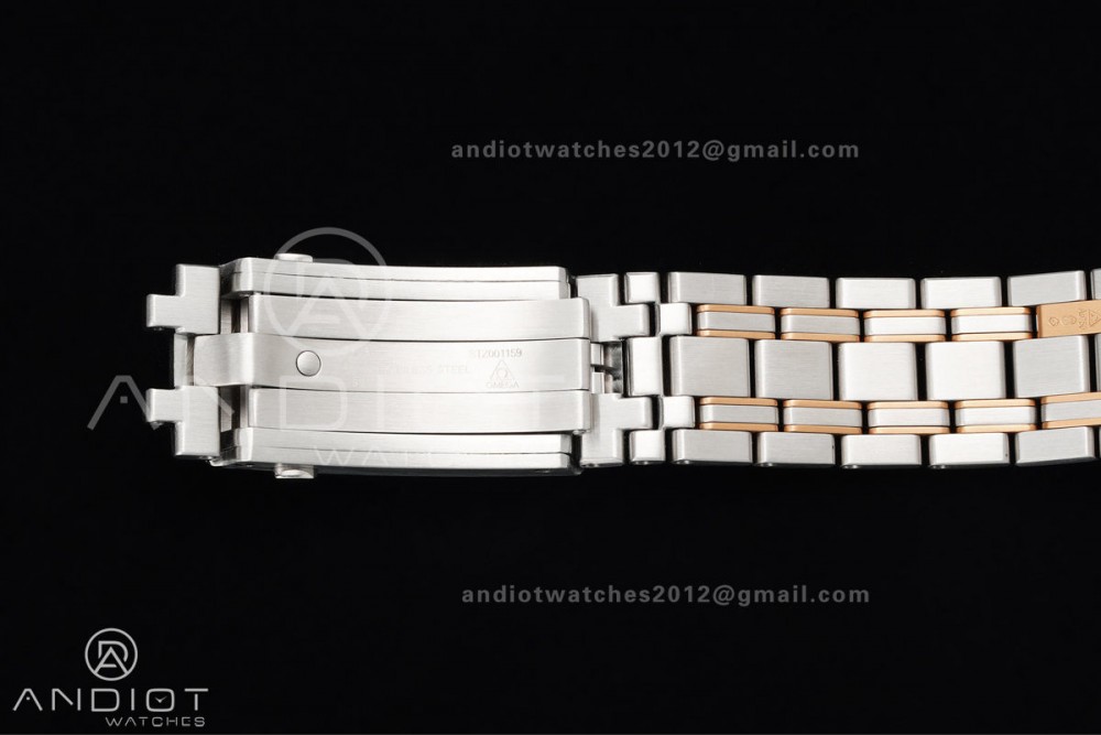 - Strap : Stainless steel bracelet with 18k rose gold plated middle links