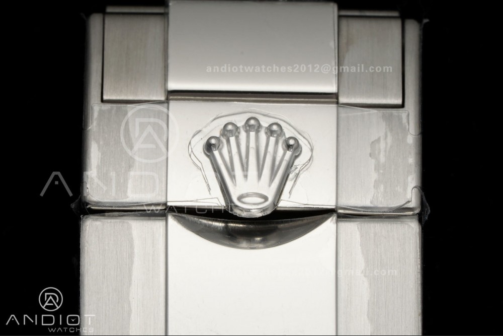 - Crystal : Scratch-proof sapphire crystal with semi-invisible crown etched at 6:00 position of the crystal (same as genuine and this is the first of its kind, one revolutionary breakthrough of the Rolex replicas)