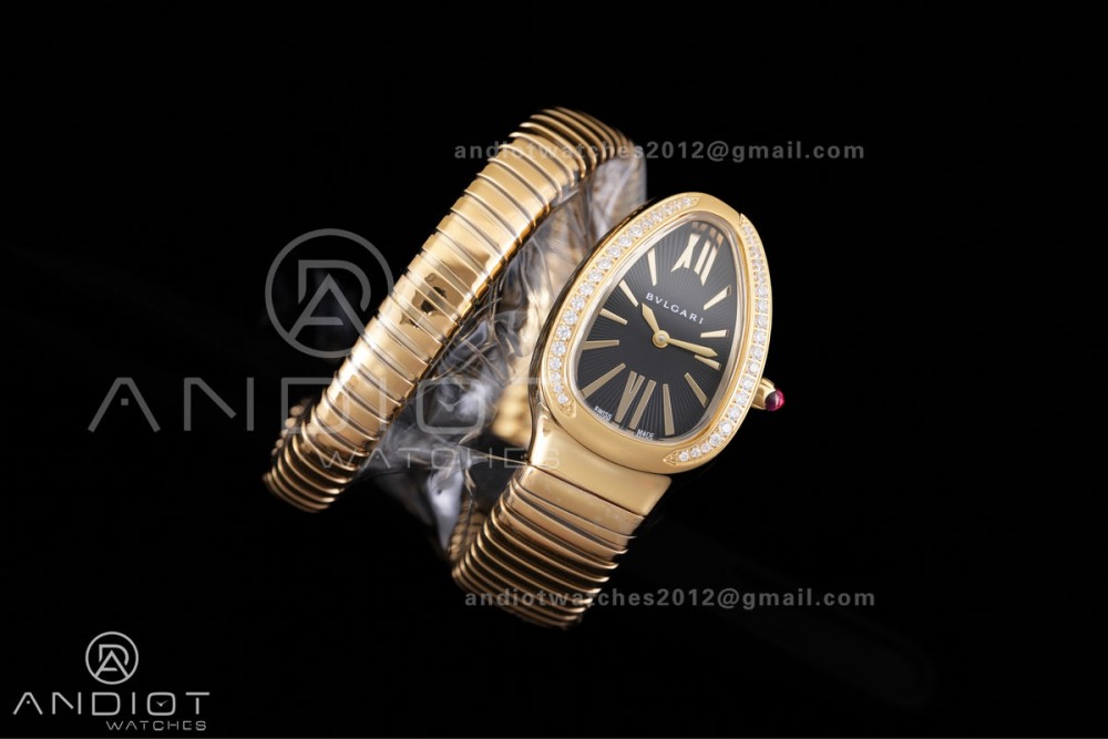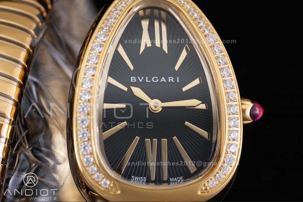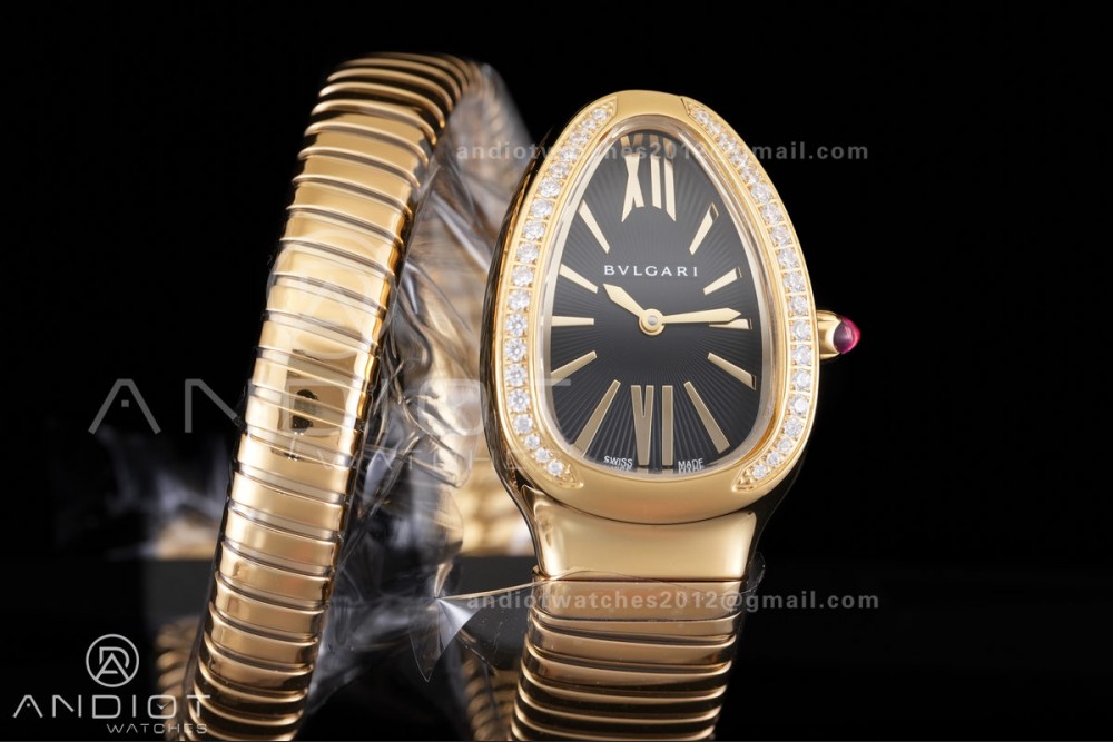 Serpenti 35mm Diamonds Bezel YG BVF 1:1 Best Edition Black Dial on YG Bracelet Ronda Quartz