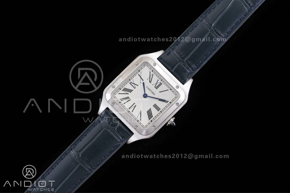 Santos Dumont 43.5mm SS F1F Best Edition Silver Dial on Blue Leather Strap Quartz