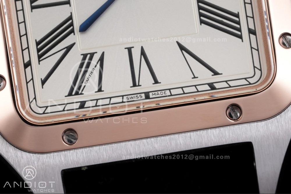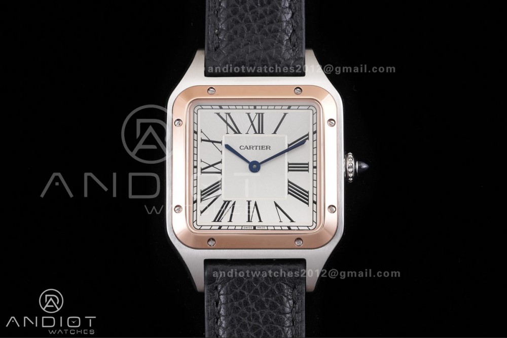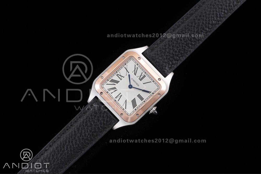 Santos Dumont 43.5mm SS/RG F1F Best Edition Silver Dial on Black Leather Strap Quartz