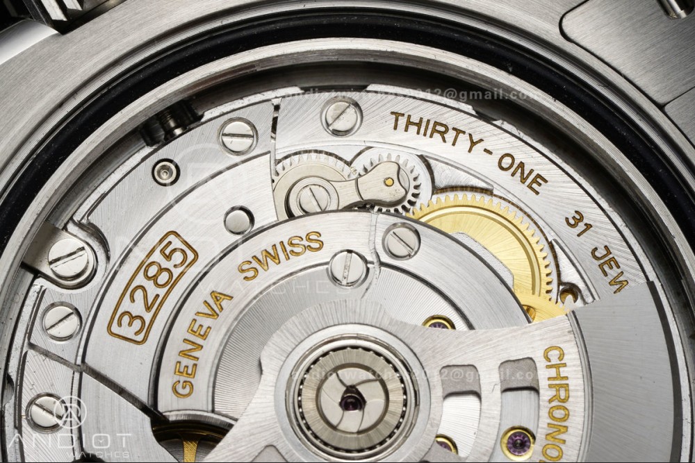- Movement : Asian JingHe Super Clone 3285 Automatic GMT movement with decorated bridges & rotor with correct hand stack, Free Sprung same as geunine.
