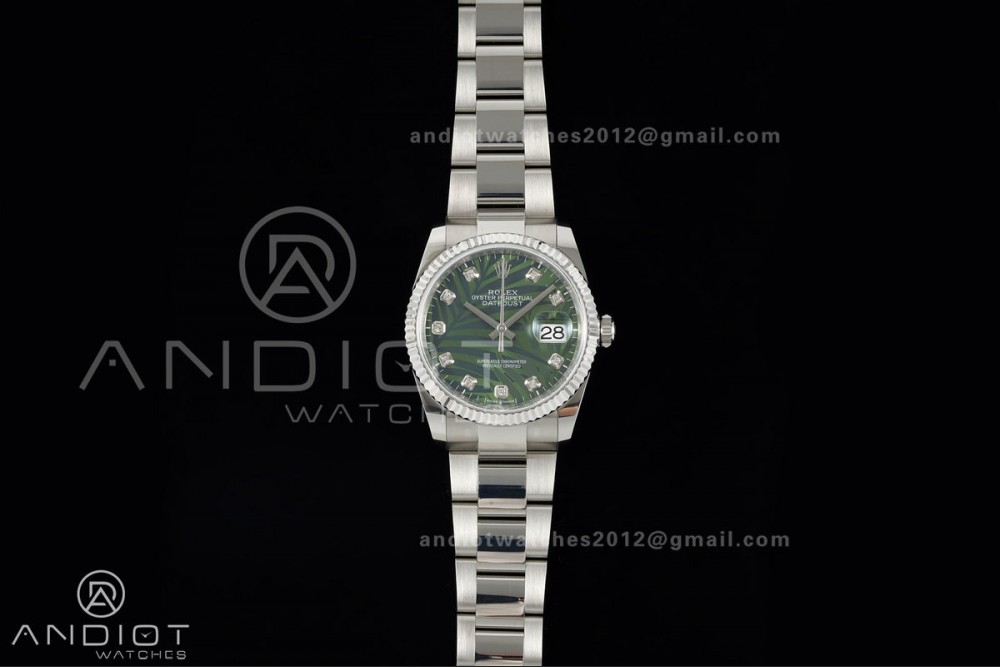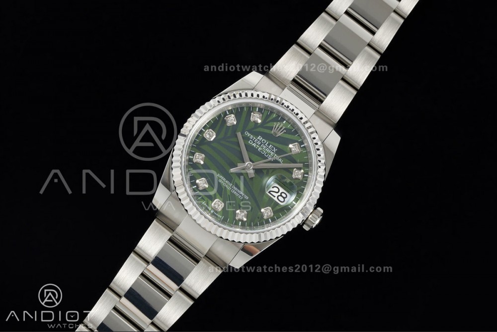 DateJust 36 SS 126234 ARF 1:1 Best Edition Green Leaves Diamonds Dial on Oyster Bracelet DD3235