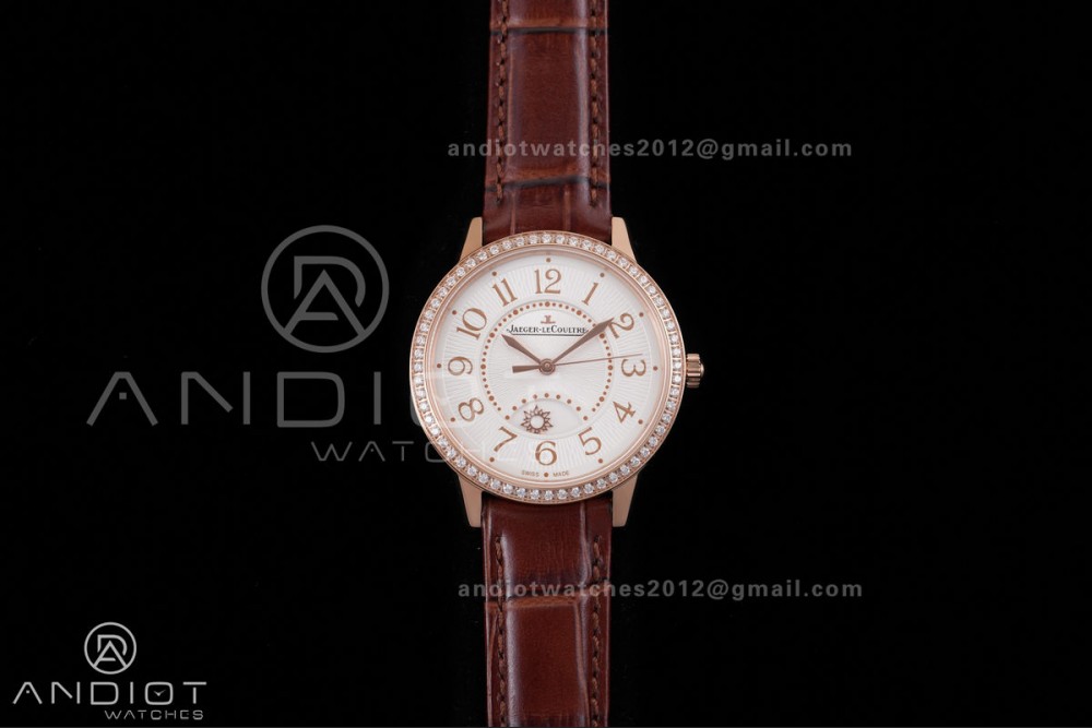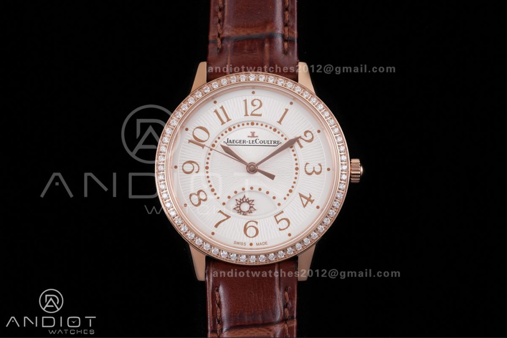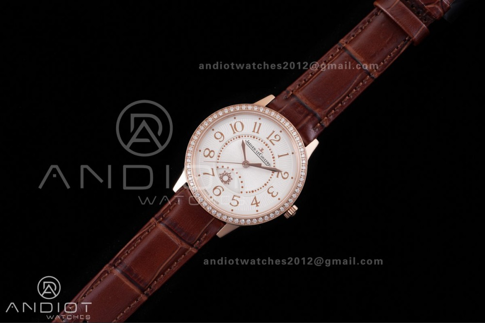 Rendez-Vous Night & Day RG APSF 1:1 Best Edition White Dial Diamonds Bezel on Brown Leather Strap SA898