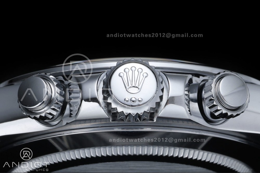 - Crystal : Scratch-proof sapphire crystal with semi-invisible crown etched at 6:00 position of the crystal (same as genuine and this is the first of its kind, one revolutionary breakthrough of the Rolex replicas)