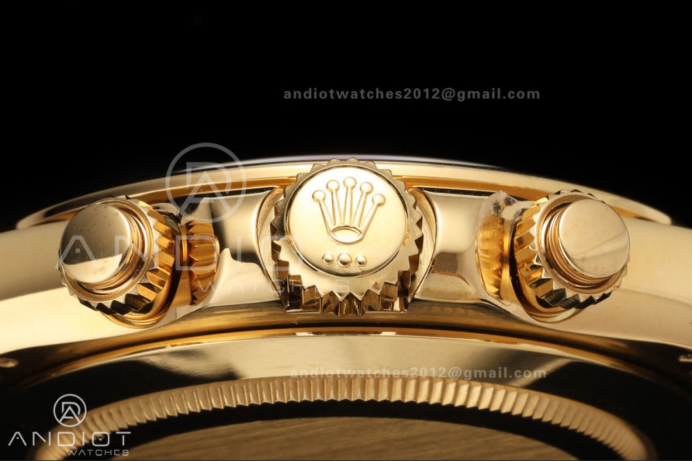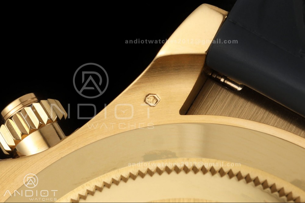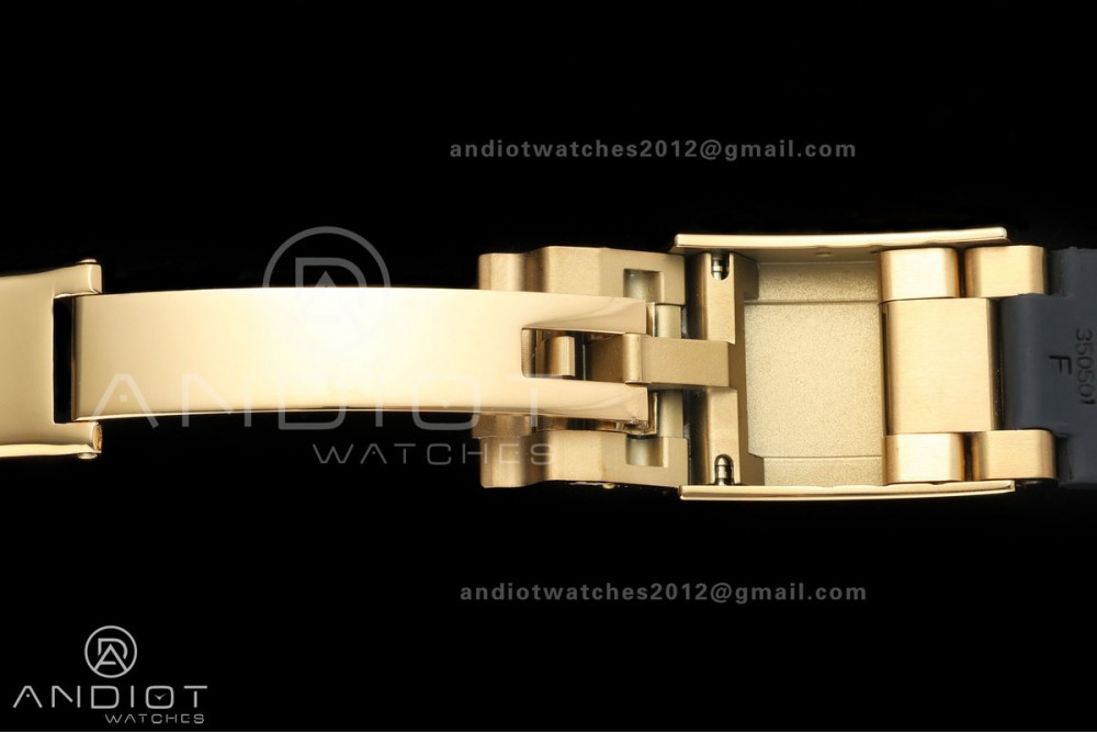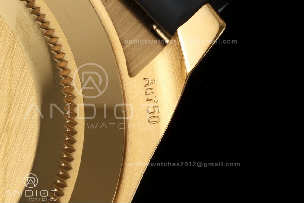 - Case : 1:1 replicated 18K yellow gold plated solid 904L stainless steel case, Cu-W metal to increase watch weight to match the genuine gold watch weight, almost same weight as genuine watch