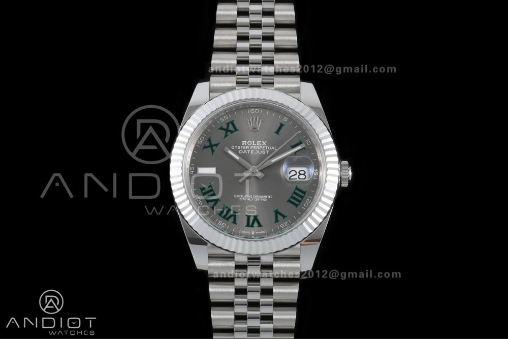 DateJust 41 126334 GOLD Maker 1:1 Best Edition Gray Dial Green Roman on Jubilee Bracelet JH3235 (Free Sprung)