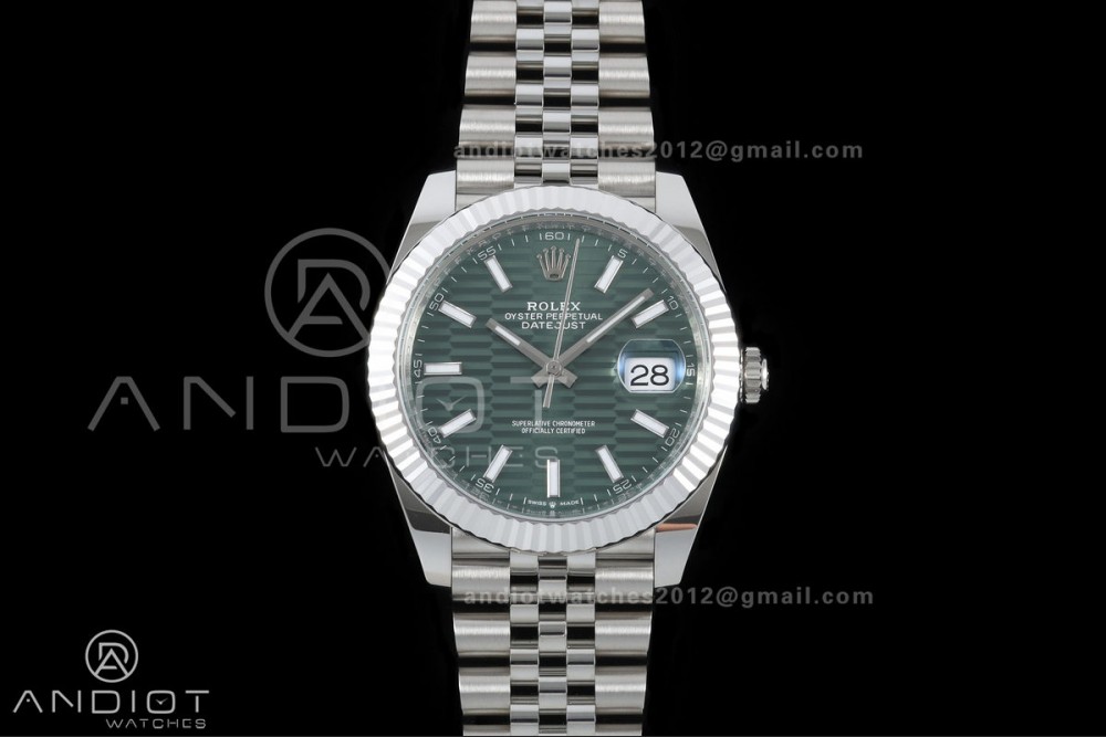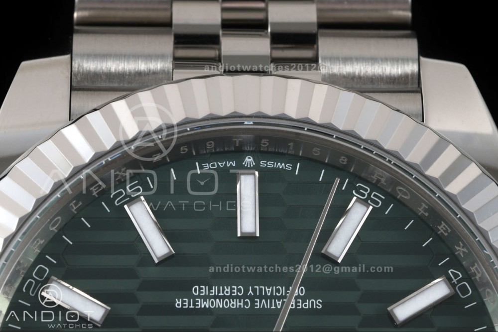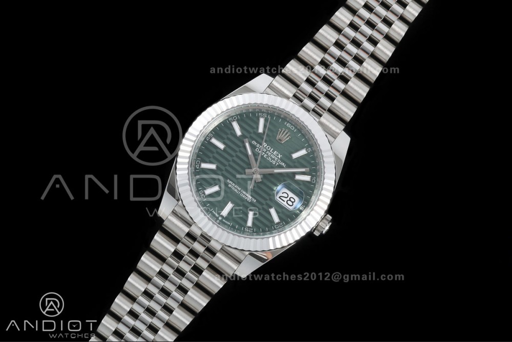 DateJust 41 126334 GOLD Maker 1:1 Best Edition Green Textured Stick Dial on Jubilee Bracelet JH3235 (Free Sprung)