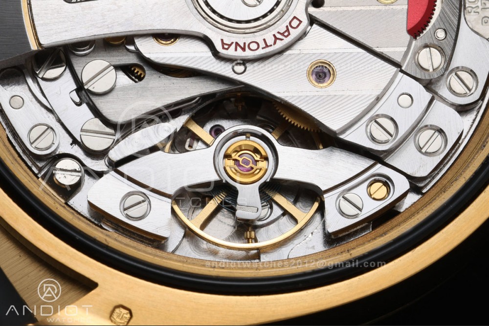 - Movement : Free Sprung Balance Wheel Superclone UFO.F4131 Slim Chronograph Automatic with Fully Functional Chronograph and decorated Rotor & Bridges/Plates like Rolex Genuine Calibre 4131 for Daytona Chronograph (Super Clone 4131 with Full Functional Chronograph