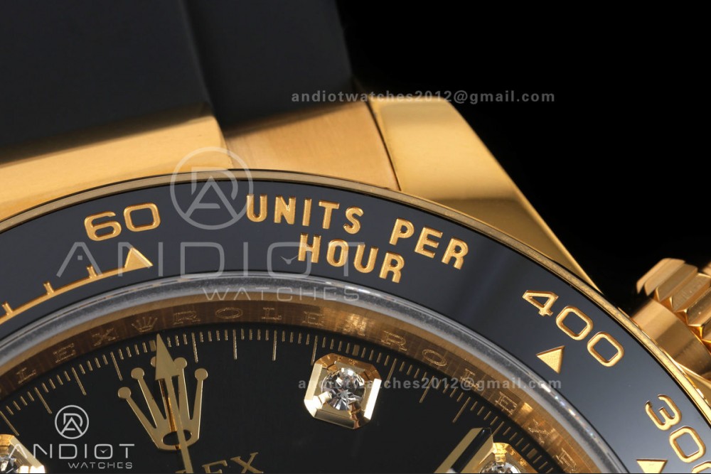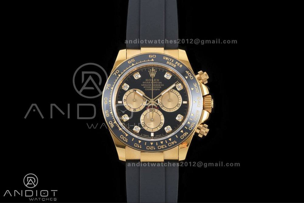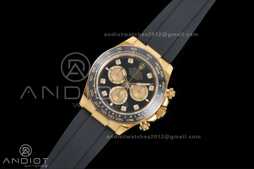 Daytona 126518 QF 1:1 Best Edition Black/YG Diamonds Dial on Oysterflex Strap JH4131 V18 Weighted (Free Sprung)