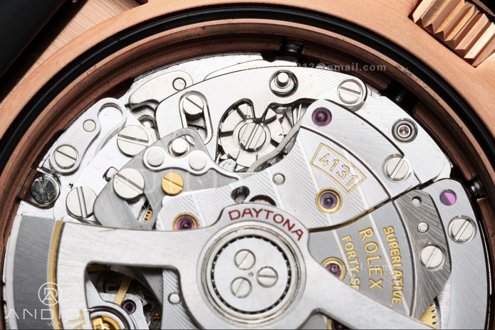 - Movement : Free Sprung Balance Wheel Superclone UFO.F4131 Slim Chronograph Automatic with Fully Functional Chronograph and decorated Rotor & Bridges/Plates like Rolex Genuine Calibre 4131 for Daytona Chronograph (Super Clone 4131 with Full Functional Chronograph