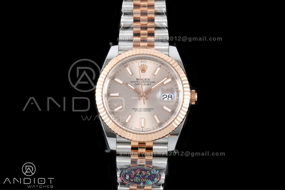 DateJust 41 126331 904L SS/RG VF 1:1 Best Edition RG Stick Dial on Jubilee Bracelet DD3235