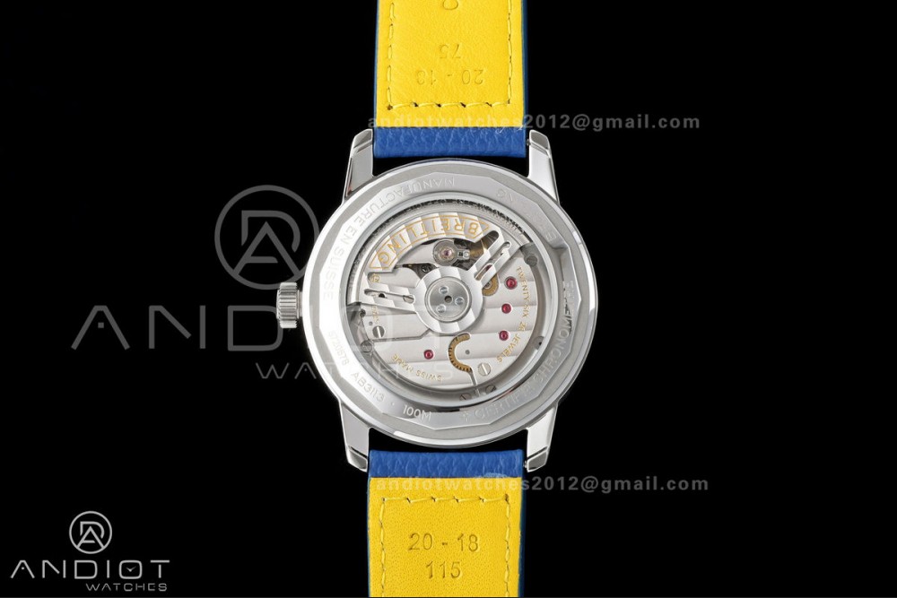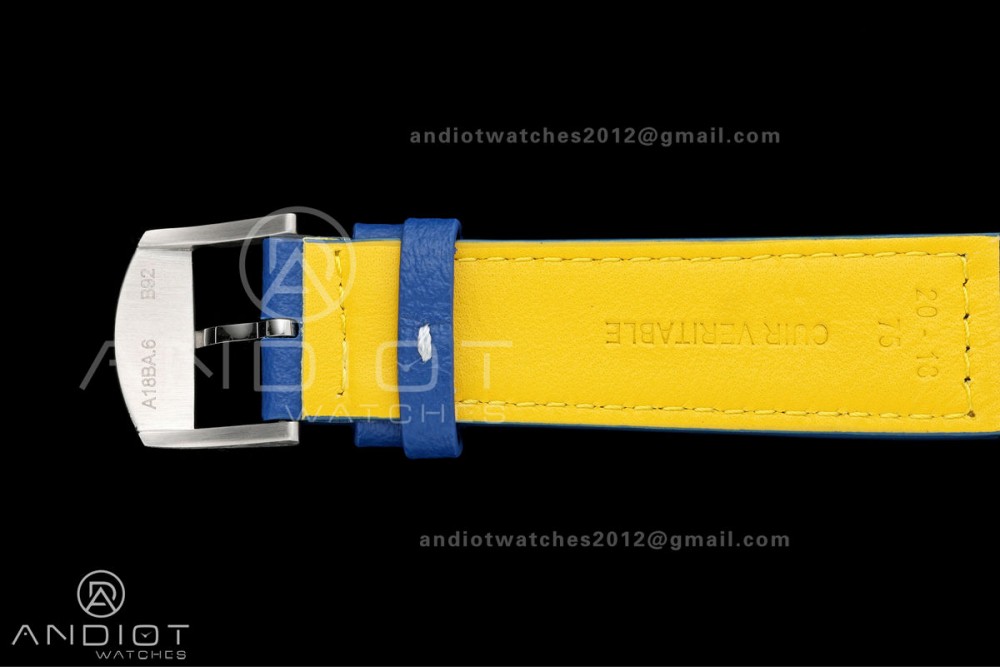Top Time B31 BLF 1:1 Best Edition Blue Dial Yellow Hand on Blue Leather Strap AB31