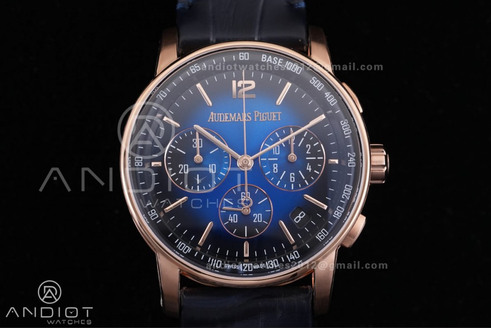 Code 11.59 Chrono 26393 RG APSF 1:1 Best Edition Blue/Black Dial on Blue Leather Strap SA4401 Super Clone
