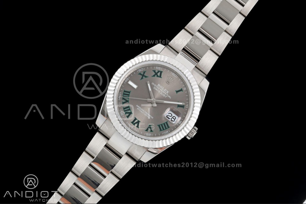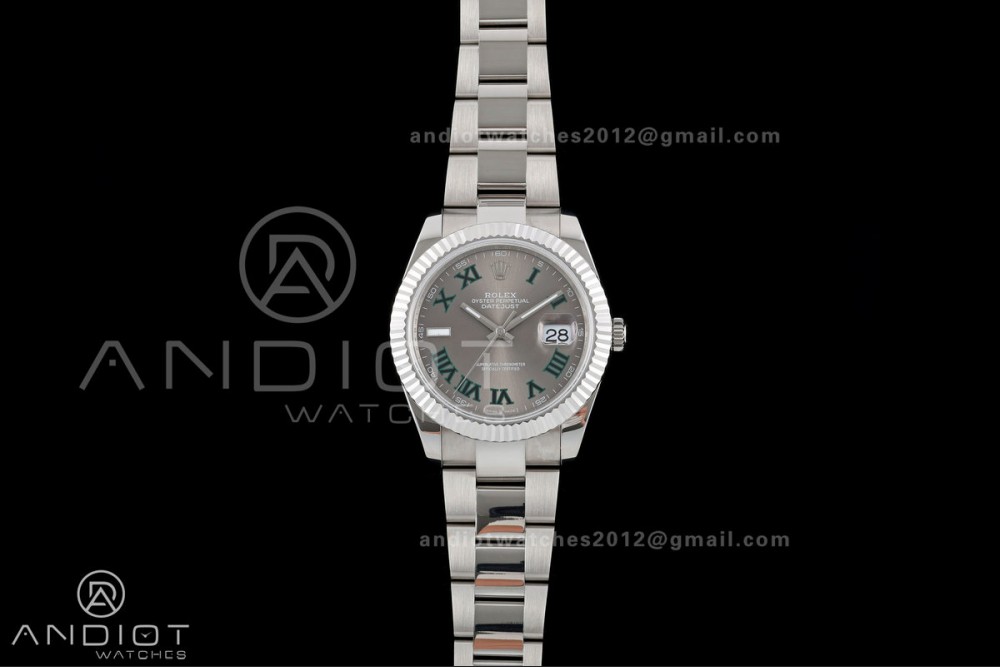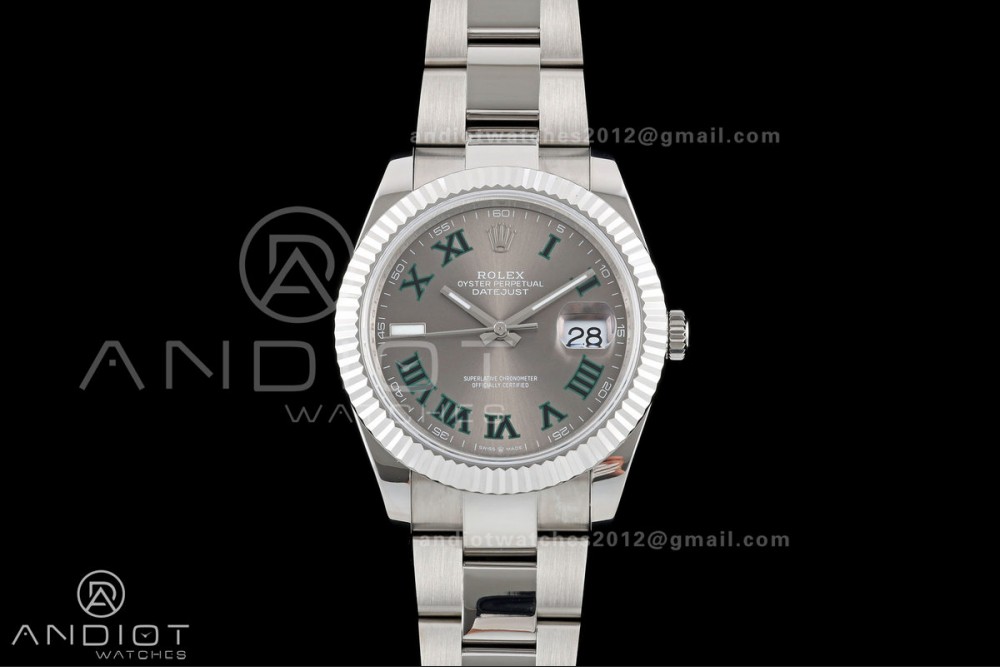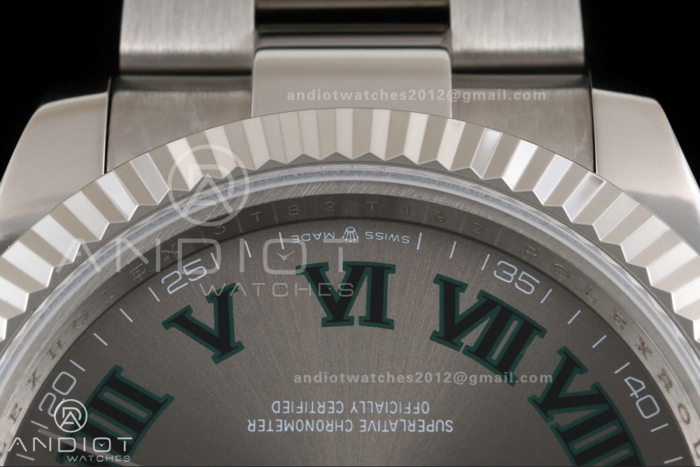 DateJust 41 126334 QF 1:1 Best Edition Gray Dial Green Roman on Oyster Bracelet JH3235 (Free Sprung)