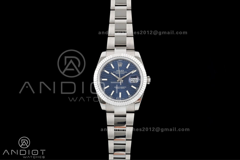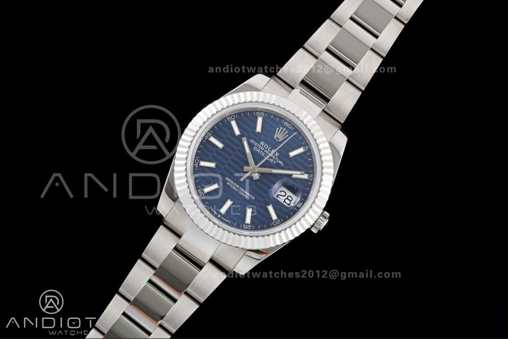 DateJust 41 126334 QF 1:1 Best Edition Blue Textured Stick Dial on Oyster Bracelet JH3235 (Free Sprung)