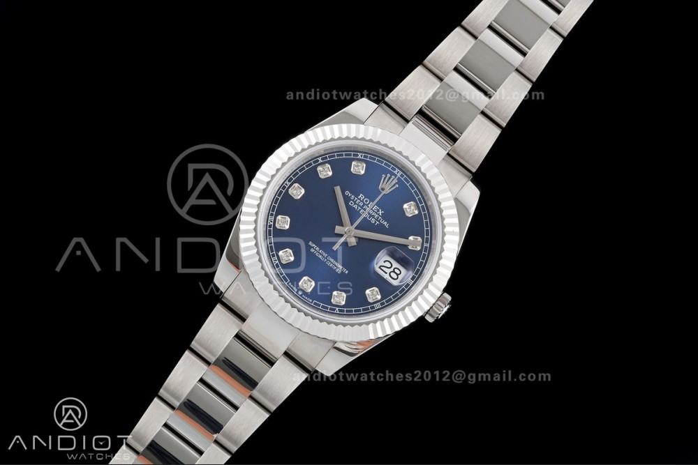 DateJust 41 126334 QF 1:1 Best Edition Blue Diamonds Dial on Oyster Bracelet JH3235 (Free Sprung)