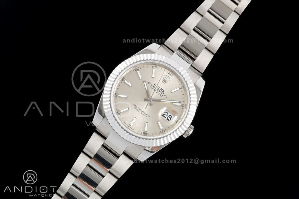 DateJust 41 126334 QF 1:1 Best Edition Silver Stick Dial on Oyster Bracelet JH3235 (Free Sprung)