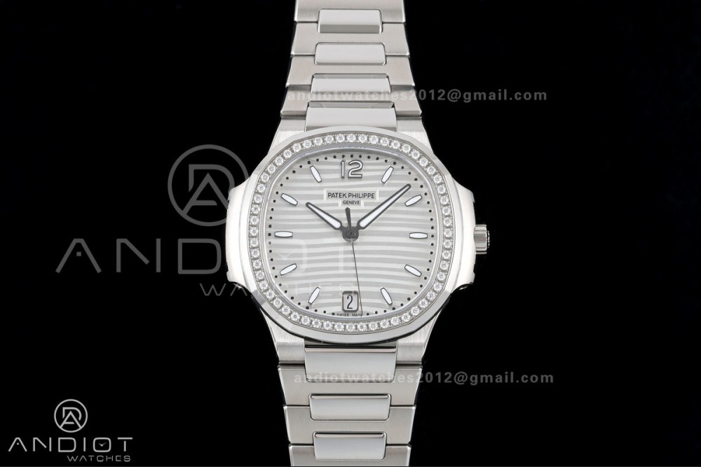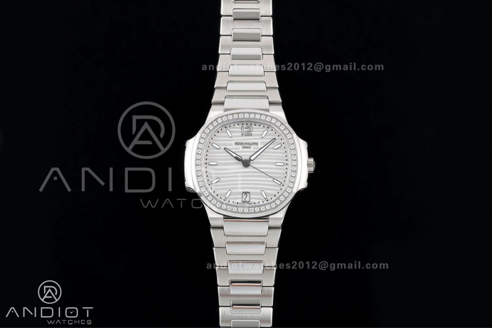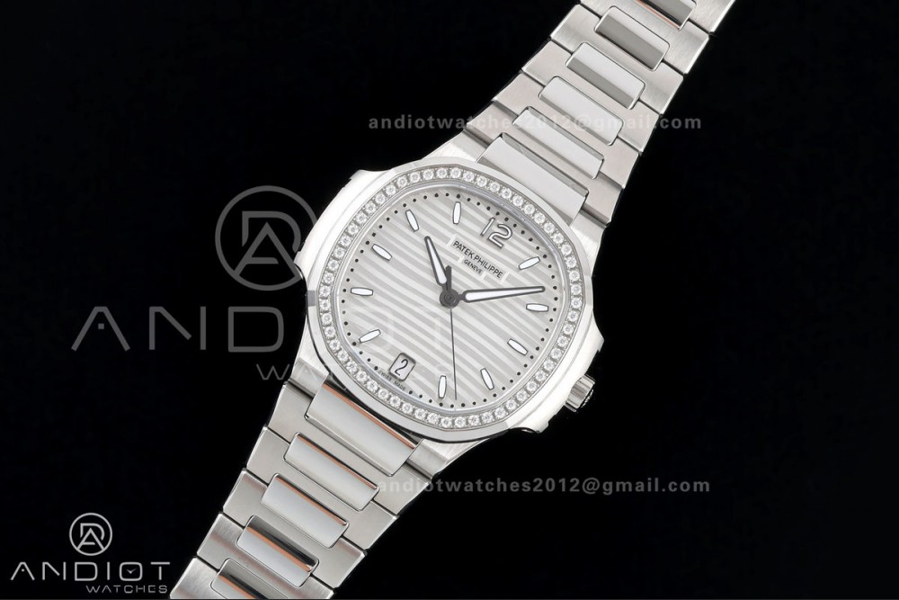 Nautilus 7118 Ladies DDF 1:1 Best Edition Silver Dial Diamonds Bezel on SS Bracelet DD330 Super Clone