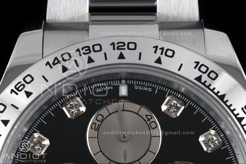 Daytona 126509 QF 1:1 Best Edition Black/Silver Diamonds Dial on SS Bracelet JH4131 (Free Sprung) V18