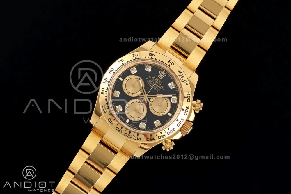 Daytona 126508 QF 1:1 Best Edition Black/YG Diamonds Dial on YG Bracelet JH4131 (Free Sprung) V18